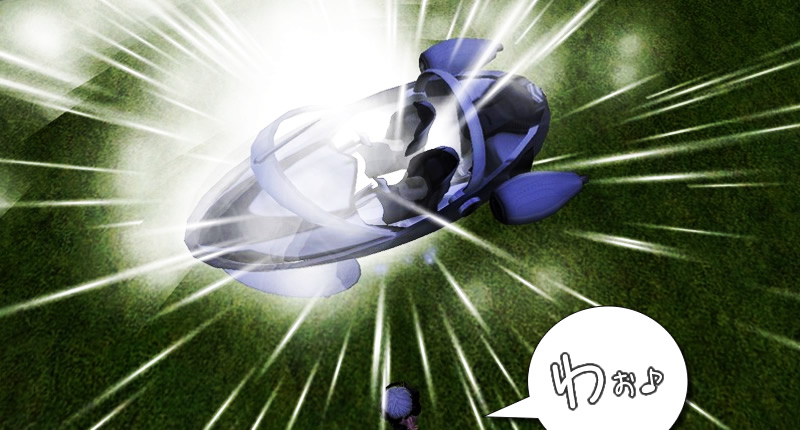 搭乗するとビーコン(サイドウインカー)部分がうっすらと白く光って夜間飛行が映える様になりました。消失効果はエンゼルチビーダとは異なるタイプでホワイトライトが洪水のごとく輝き機体とともに消えていきます!