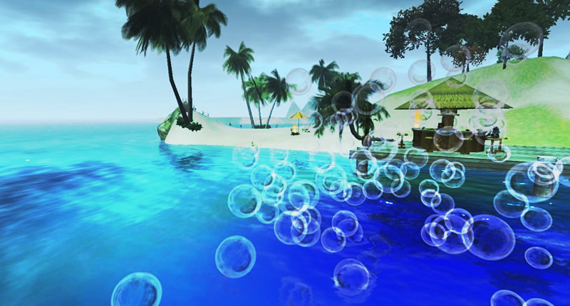 孤島はミューズさん作で素敵なのですが、ポリネシア的な雰囲気をスポイルするSLの海色はいただけません。本日は海色テクスチャを書いて孤島感を高める作業に取り組んでいました。