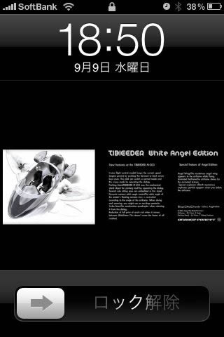 iPhoneの壁紙画面の余白は漆黒にブラックアウトしてくれるので、そこを狙ってエンゼルチビーダをモチーフに横帯の壁紙を作ってみました。