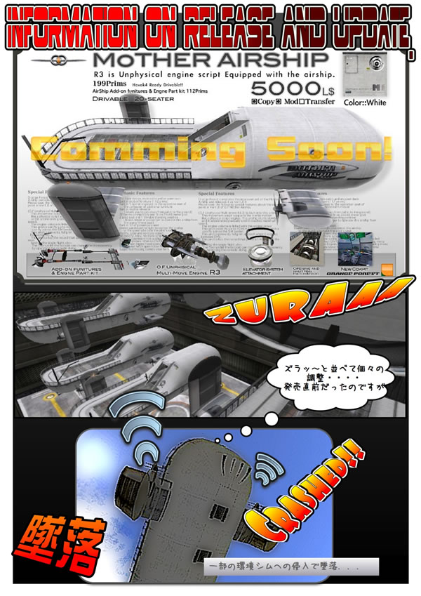 本飛行船に対する御意見、御要望、質問、プレゼントギフトの依頼等は、お気軽に Myuse Swindlehurstまでお問い合わせ下さい。オレンジフォレストはあなたからのフィードバックを歓迎します。 [2009/9/17追記] SIMの挙動変更に合わせ、Arshipのバージョンを v1.9→ v1.11に更新しました。最新の製品版を御希望のお客様はMyuse Swindlehurstまで御相談下さい。