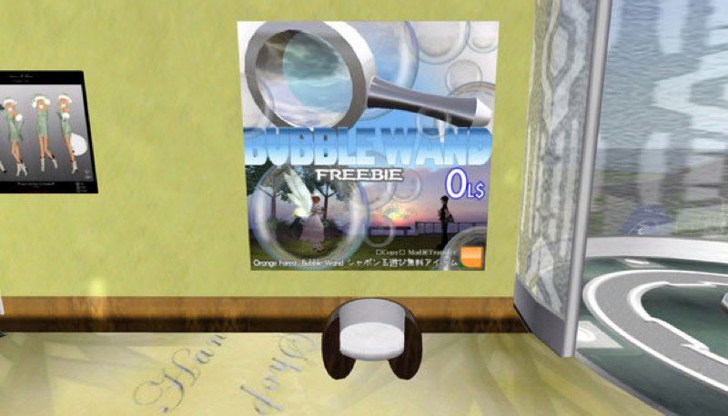 シャボン玉遊びをどうぞ♪ Product Info 2008年12月19日 ::: O.F Bubble Wand ::: シャボン玉ステックHanako Shop オーナー ハナコさんからアイテムキャンプ・グッズの製作依頼を受けまして、シャボン玉遊びの小道具を作ってみました。ハナコさんの巣鴨・花子モール アイテムキャンプの情報はこちらです! 装着するとブクブクとバブルパーティクルが効果音に乗って出て来ます。 少し歩き回ったり,多人数で手に持つと、辺り一面シャボン玉がそよいで綺麗です。 シャボン玉は時間が経つと消え、風がふくとなびいてただよいます。眺めていると少し本物のような感じがしてきて不思議です。 一人...黄昏れたり物思いにふける時にでも、気分転換アイテムとしてお使い下さい!ちなみに、イルカの副産物ですけどそれは言わない方向でおねがいします。。。シャボン玉の設定もサウンドもオリジナルでございますw::: ハナコモール 2F アイテムキャンプ ::: MagSL 1 巣鴨 ハナコモール sugamo/43/217/32それではハナコモールのアイテムキャンプのみでの配布とさせていただきますので、モール2Fのイスに10分間座って Bubble Wand をゲットしてください! ささやかなアイテムですが、童心に帰ってシャボン玉遊びをお楽しみ下さいませ♪by Orange Forest http://orangeforest.blog.shinobi.jp/product%20info/%E3%82%B7%E3%83%A3%E3%83%9C%E3%83%B3%E7%8E%89%E9%81%8A%E3%81%B3%E3%82%92%E3%81%A9%E3%81%86%E3%81%9E%E2%99%AAシャボン玉遊びをどうぞ♪