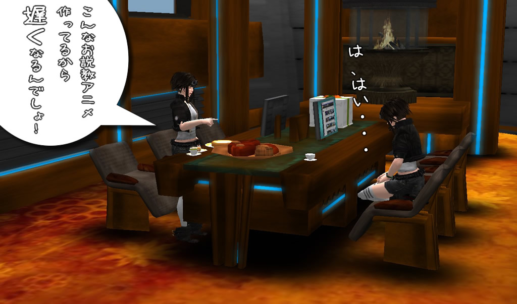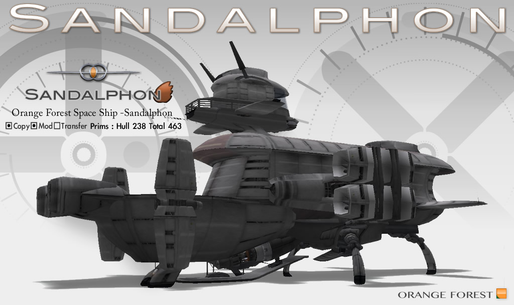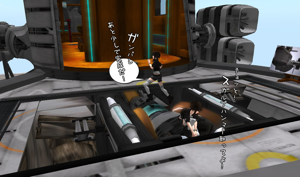 残プリム数の関係でエンジンオブジェクトがRez されていませんが、駐機スタンドと家具類は船体からRezした状態で展示してあります。
