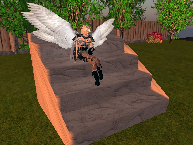 墜落炎上した飛行船が転がったりもしていますが...右手にプッカリと浮かんでいるのが原寸大の浮島です。転落防止のためオプションのツリーガーデーンフェンスを装備した状態です。