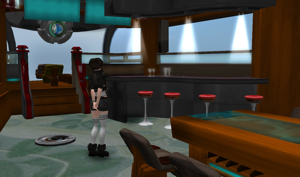 SF的な外装とは違い室内はウッディなリビング仕立てとしてあります、展望ラウンジ・バー・ミーティングスペースを備え、照明やイルミネーションのコントロールができます。