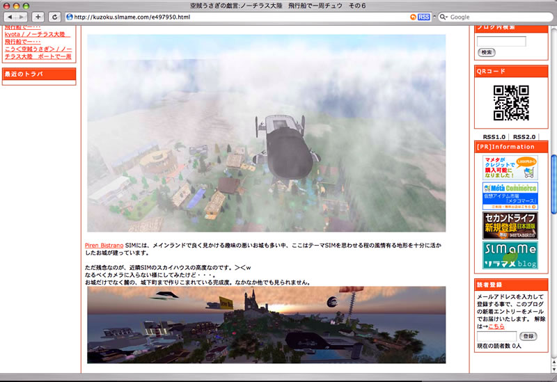 ロゴとノーチラス横断と銀座階段と♪ Factory Report 2009年01月18日 ::: O.F Mother Airship :::::: Airship Logo :::みなさまこんばんわっオビワンです。昨日からO.F Mother Airship のアップデート作業も機体の仕立て直しに入りました。コクピットまわりのデザインとテクスチャの変更から手をつける予定だったのですが、まえから少し気になっていた機体サイドの機種名ロゴを手直しするところから始めました。現行機種のロゴは少し機体に対して大きいかとも思いサイズと質感の変更作業をしています。以前よりもう少しブラッククロームな色あいで、煤けながらも磨き込まれている感じをだそうと試行錯誤していますw 重たく鈍い感じは出て来たのですが、良くあること・・・方向が違って来てる様にも感じていますw う〜ん立体形状だからリベット留めにしようかな...とか(∈_∋)今回のアップデートから機体サイドのベーステクスチャをユーザー様に配布できる用意をしようと思っています。それをベースに船名やお好きなロゴで機体を飾っていただきたいと思うのです。翼や下部のダミーデッキにかぶらない位置指定やロゴ等の合成のコツ(我流ですがw)機体の盤面の陰影を浮き立たせたままの合成方法などもサポートページにて公開したいと思っています。画像ソフトを普段お使いになる方には、ベーステクスチャさえあればなんて事もないでしょう、あまり経験の無い方でも少し頑張れば、カッチリと仕立て上がります。SL世界でただ一機をご自身で作る喜びを感じていただけたらと思っています。。 そしてその飛行船は、評価版として昨日もご紹介した「空賊うさぎのコウさん」のところで.....な、なんと「ノーチラス大陸 飛行船で一周チュウ」が その6に突入していました!!その行程を綴った日記が、またまた綺麗なパノラマ写真とともに掲載されています!::: 空賊うさぎの戯言 :::・http://kuzoku.slmame.com/e497950.html が、がんばれ〜飛行船ブラッキィ1号♪でもでも、このパノラマ写真ってどうやって撮っているのでしょうか!?飛行船の大きさからいっても...気になってますwこんなにカメラ遠方に向けれるの....大型モニターをお使いで、横幅ワイドにビューアーを....それともスナップを横長ワイドに切り抜いてるのかしら.... とか謎が頭を駆け巡っていますwwそして製作相方のミューズさんは...オビワンがテクスチャや謎と戦っている間、銀座ファクトリーの飛行船に搭乗用の階段を作ってくれてました!::: 銀座の天使さまご満悦中♪w ::: Airship Factory *Ginza*・Orange Forest Airship Factory *Ginza* (Ginza/38/25/31)ファクトリー地上にあるエレベータからもデッキに搭乗できるのですが、お使いにならない方も多いので階段を取り付けたそうです!昨日から飛行船デッキに登って遊んでいかれるお客様も増えましたし、吊り桟橋の様な造形もナイスです!今にもギーバッタンっとか動きそうですwby オビワン PR http://orangeforest.blog.shinobi.jp/factory%20report/%E3%83%AD%E3%82%B4%E3%81%A8%E3%83%8E%E3%83%BC%E3%83%81%E3%83%A9%E3%82%B9%E6%A8%AA%E6%96%AD%E3%81%A8%E9%8A%80%E5%BA%A7%E9%9A%8E%E6%AE%B5%E3%81%A8%E2%99%AAロゴとノーチラス横断と銀座階段と♪
