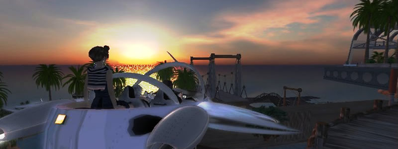 チェリースクエアーから海沿いを低空飛行にて海浜道路を南下。海沿いのお洒落な集落を眺めつつリンデンの公共港で夕日を拝み、いろは坂かモンテカルロのような幾重のつづれおり道路に驚いたと思えば空中庭園にこんにちはっ!帰り道はSIM高空を斜めに横断しながら一っ飛び〜高度400m なのに SL足場屋さん?の高層建築物にぶつかりそうになったりでしたが機上のお会話もはずみ久しぶりに楽しい冒険旅行気分のフライトとなりました。。