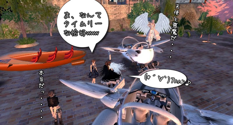 プチ冒険飛行の後、発売予定の白・黒エンゼルチビーダのお話をしているとミッキョンさんが、とんでもなくタイムリーないでたちで現れました!!