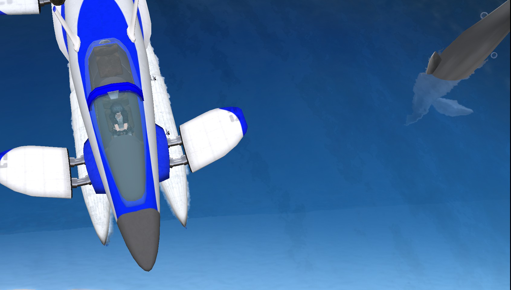 と言うのも、ホバーや非物理の飛行機ばかりと戯れていたためか、いわゆる飛行機の操縦を忘れていたのか?離水まではよかったのですが、すぐにキリモミ飛行に陥り公海沿岸のご近所さんのお宅に突っ込みまくり・・・