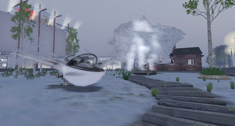 倉庫前のガーデンを少し拡張いたしました。まだ今のところ一時的に野原ですが、店舗も兼ねて飛行船をゆったりと係留できる大型倉庫を建設する予定です。また、時間とプリム数に余裕があれば、以前制作ラボでレイアウトした様な、飛行船の整備ドックを内部に再現しファクトリーらしさに色を添えてみたいです。