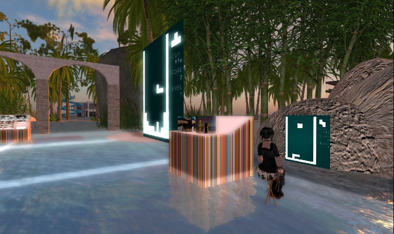 更に一角には、ヒメコさんのハイテクスクリプト作品のテトリスや黒板が置いてあります! 先日20m以上の巨大テトリスを見せていただきましたが...キレイな上に圧巻でした。。