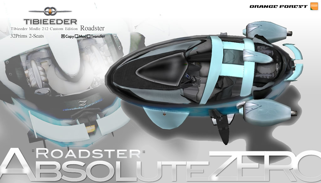 Custom Tibieeder M-212 Absolute ZERO 新型絶対零度2 カスタム Customise Notes 2011年08月25日 ::: Absolute ZERO/ O.F TIBIEEDR model-212 Roadster Custom :::こちらはカスタムチビーダ最終の機体、メタバーズコンシェルジュ Kei Flanagan さんの「新型絶対零度2号」です。2年程前カスタムのご依頼を受けて製作した絶対零度号の最新版になります。ベースモデルの機体は先にリリースしたチビーダ213型スタンダードです。::: Absolute ZERO :::ご依頼のカスタムテーマは覚えきれない程沢山いただきました・・・ですが所詮おわん型プリムを激変させるのは難しく、さりとてカスタムチビーダの最終機体でもある1機なので、いただいたテーマの中から「流れる様なボディライン」という1点に絞り製作してみました。イメージは車で言うところの二人乗りロードスターです、ロングノーズでコクピットは狭くルーフは限りなく低くウエストラインは前傾でリアはハイデッキに・・・描いたのはフェラーリの360モデナさんを前方から眺めた時のあの ふっくらワイドなぺったんこ感、それが出せたらと思いプリムをいじり回した結果がこれです。当然、結果はおぼつかないですが、人(アバター)がやっと入る低さは達成しました。いやぁ〜もう、ルーフやハッチが開閉しなければならないのでプリムが上手く繋がらなくてまいりました!何かの拍子でズレたら繋ぎ間が絶対にちらつくはずです(笑)そして、製作中あと1Primがオーバーで飛行不能に陥るところでしたが、ミューズさんが作ってくれたスカルプのフロントウイングプリムに助けられました。この絶対零度号はスクリプト飛行エンジンにも手が加えられ、ターボブーストが8倍速になってるもようです。そのため左右にひょこひょこ抜群のハンドリング?を誇ります(笑)オビワンも操縦してみましたが、サイドスライドしながら画面からフレームアウトしたかと思う程すばしっこかったですΣ(・□・ )::: Dummy engine unit :::新たにオートRezスタンドの後部に、ロケットのブースターと絶対零度のボディを冷却するユニットを造したハイメカニカルなダミーエンジンユニットを搭載しています。いつか皆様の元に、チビーダ・ロードスターとなってお目見えする日もあるかもしれませんが、今のところ未定です。カスタムをベースに標準型を作るのは大変しんどいのでお蔵入りになったらごめんなさい。。この機体はSLでは一機のみです。メタワールドにお越しの際にはぜひ「メタワールド・コンシェルジュカフェ」を訪れてみてください。オーナー様がいらっしゃれば現物におめにかかれるかもしれません( ´ ▽ ` )ノ・メタワールド・コンシェルジュカフェブログ・Metabirds Concierge Cafe 22:00~24:00http://slurl.com/secondlife/Japan/142/100/23by Obione. PR http://orangeforest.blog.shinobi.jp/customise%20notes/custom%20tibieeder%20m-212%20absolute%20zero%20%E6%96%B0%E5%9E%8B%E7%B5%B6%E5%AF%BE%E9%9B%B6%E5%BA%A62%20%E3%82%AB%E3%82%B9%E3%82%BF%E3%83%A0Custom Tibieeder M-212 Absolute ZERO 新型絶対零度2 カスタム
