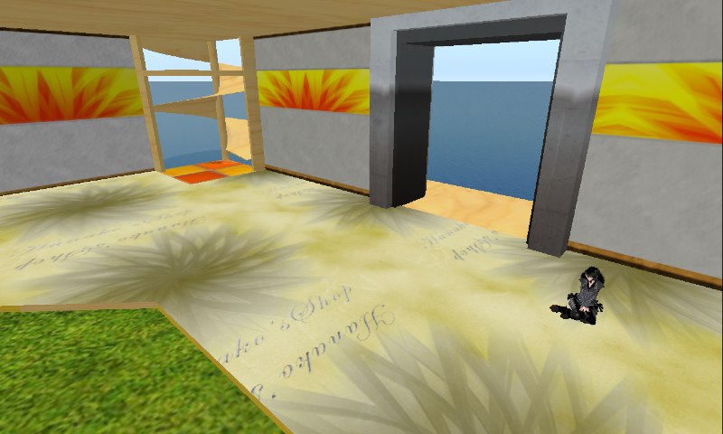 テクスチャはシームレスで作ったのですが構造的な理由からプリムの向きもサイズもあちらコチラで違います。1枚の継ぎ目の無い縦横比率も合わせた大フロアーにするのにちょっと手こずってしまいました。。