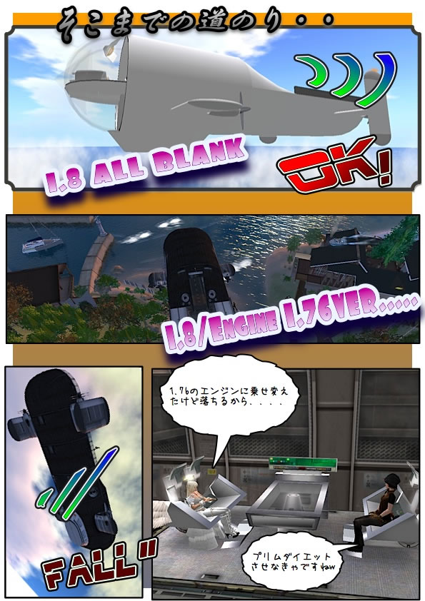 前回「其の6」で判明したように一部の環境シムへの侵入墜落は、新コクピットを含む透過テクスチャのチラツキ対策で増加したプリム、そして削除しきれなかった旧テクスチャが総データー量を増加させていた事が原因だと分かりました。