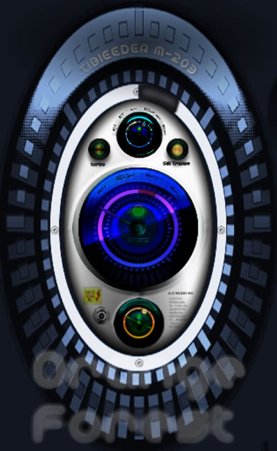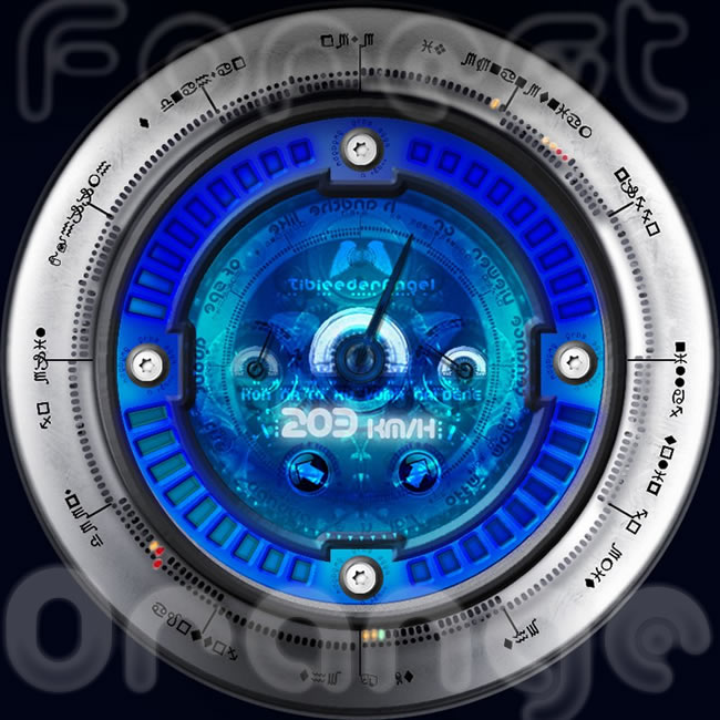 見た目、機械メータとホログラムデジタル表示の合体したメーターのつもりであり、文字盤も読み取れない宇宙語?と地球文明の言語がチャンポンで、今のところまだまだハチャメチャな状態ですw