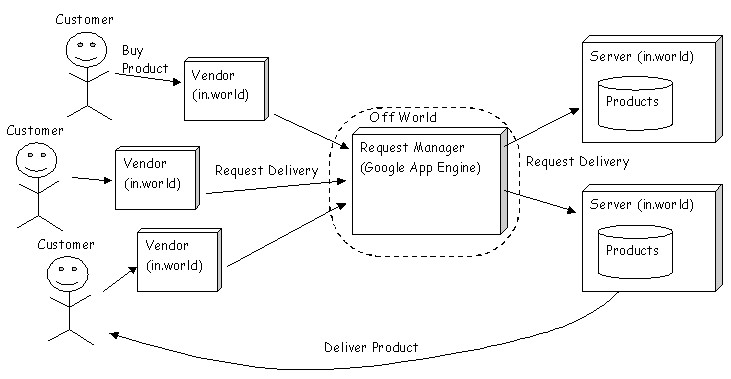 今回思い切って Secondlife の外にマネージャーを設けて市販のネットワークタイプに近づけてみることにしました。(下図)